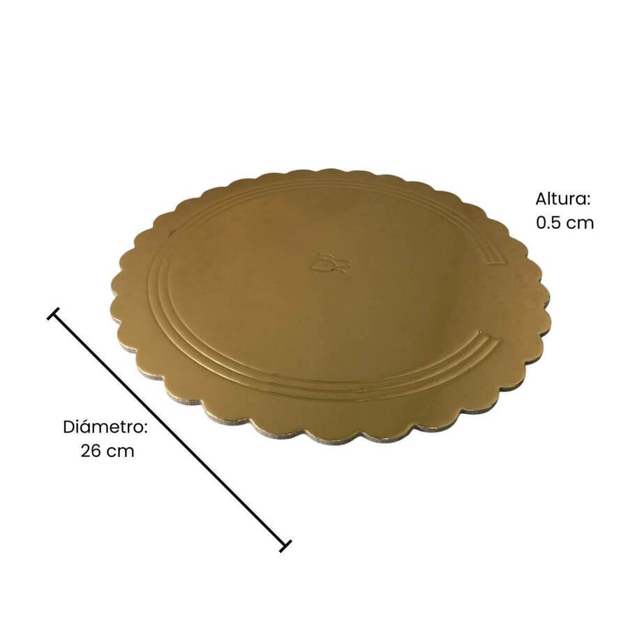 Base Para Torta Disco 26cm Dorado Cartón Rígido
