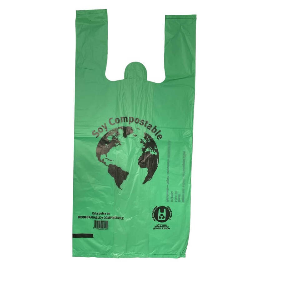 Bolsa tipo Camiseta Biodegradables y Compostables Autorizadas por la Ley. 19655 (Prevención y reducción del impacto ambiental derivado de la utilización de bolsas plásticas) de uso sustentable de bolsas plásticas.