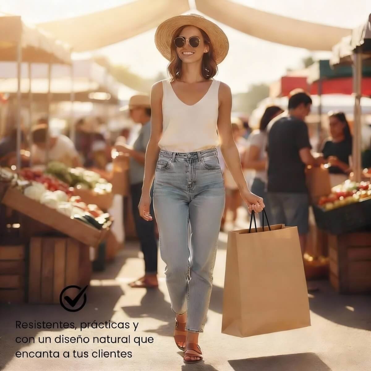Fabricada en papel kraft resistente, aporta una imagen natural y ecológica, alineada con negocios que buscan una presentación cuidada y responsable.