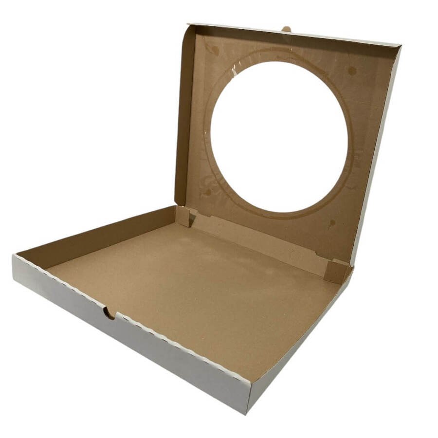 – Cajas para pizza con visor (41x41x4.5 cm)